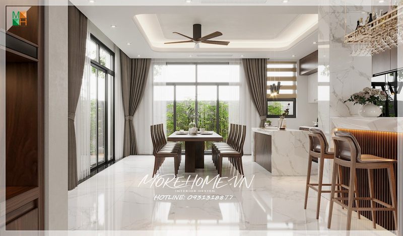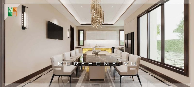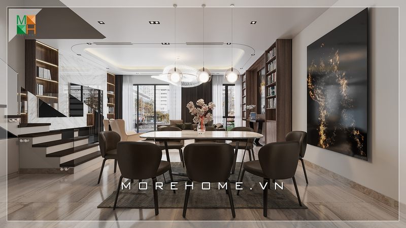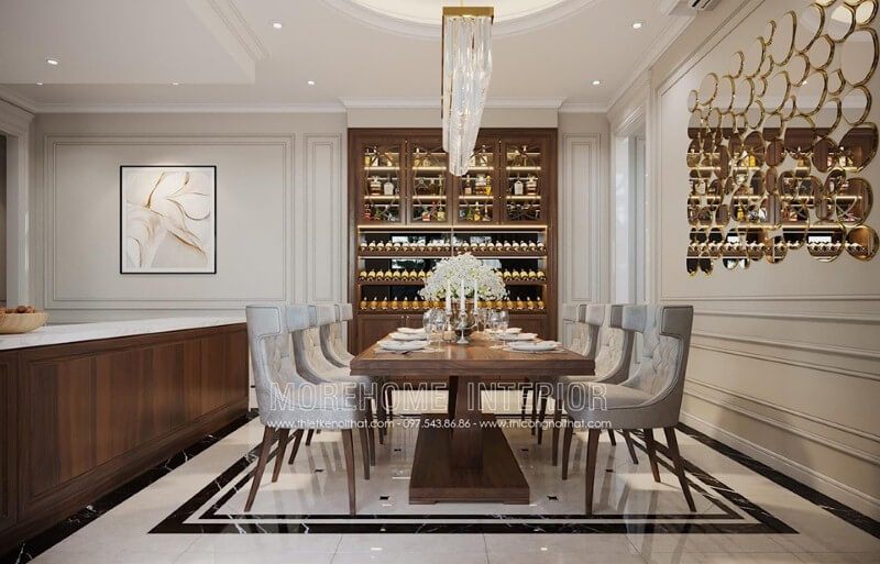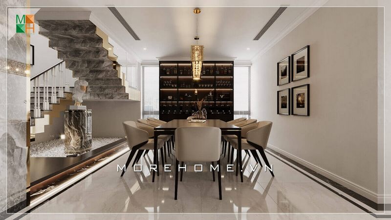 Bộ bàn ăn phòng ăn đương đại đẹp tại biệt thự phố Hà Tĩnh