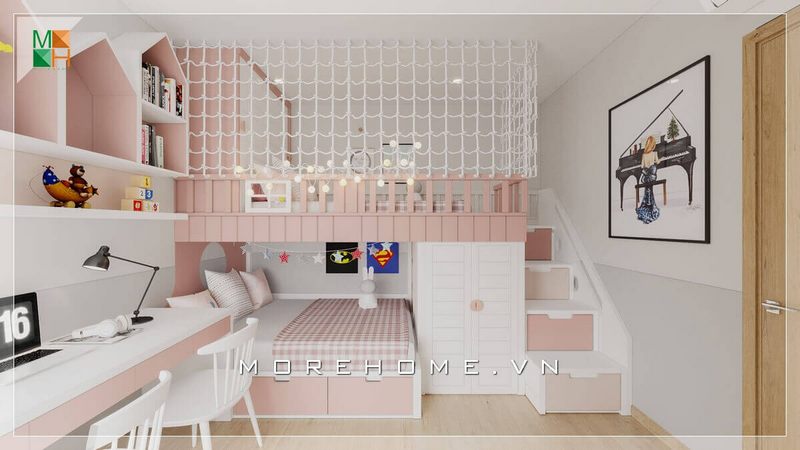 Mẫu giường ngủ thiết kế thông minh 2 tầng, đa công năng rất tiện lợi và hiện đại