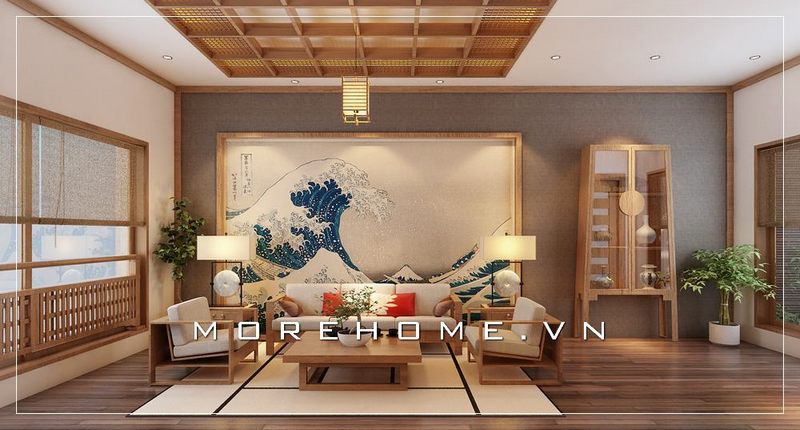 Ý tưởng phòng khách phong cách Nhật Bản nhẹ nhàng nhưng sâu lắng được thể hiện khá ấn tượng trong bố trí nội thất.