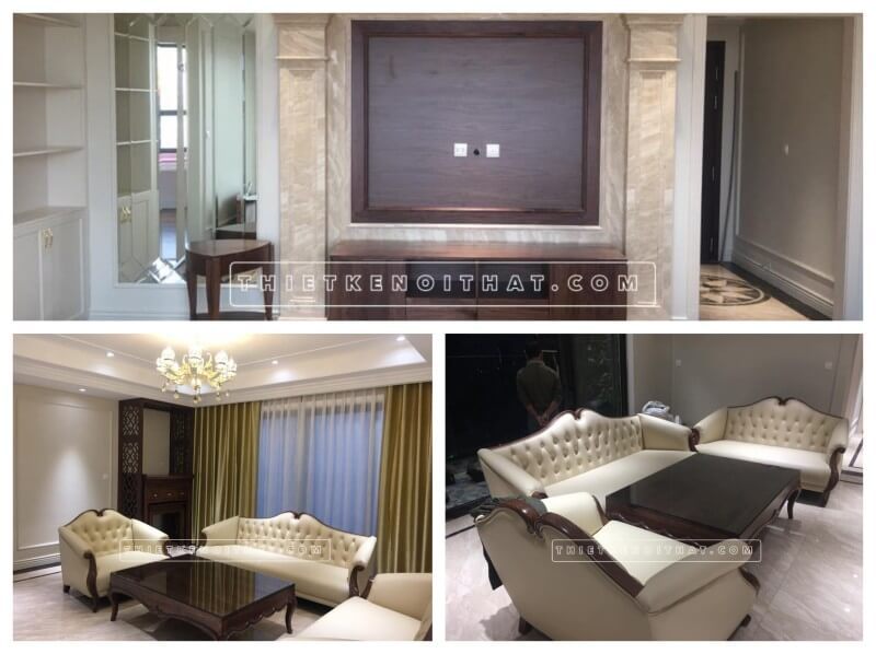 Sofa tân cổ điển được thiết kế và sản xuất bởi đội ngũ KTS, đôi bàn khéo léo của những người thợ lành nghề luôn làm hài lòng mọi khách hàng