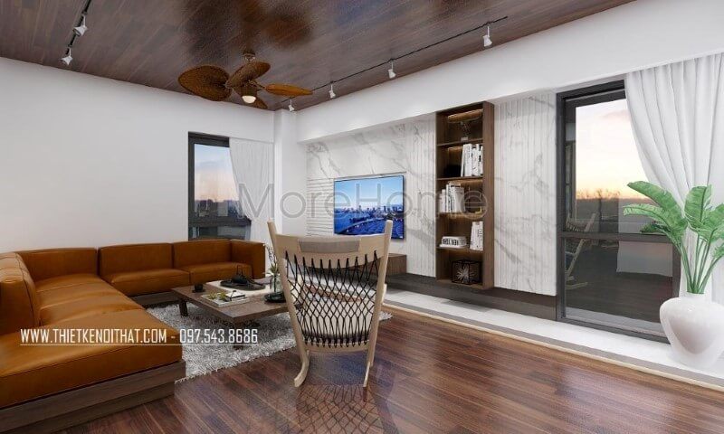 Thiết kế nội thất phòng khách chung cư cao cấp với nội thất đồ gỗ phong cách hiện đại, mới lạ