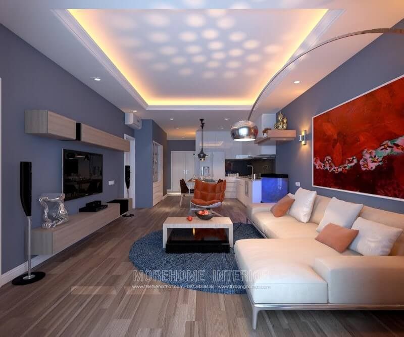 Thiết kế phòng khách chung cư đẹp tinh tế và ấn tượng góp phần mang tới không khí gia đình đầm ấm.