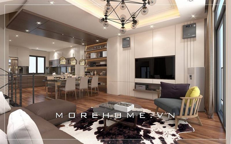 Trang trí nội thất biệt thự, nhà phố hiện đại, độc đáo với ý tưởng thiết kế phòng khách liền phòng bếp, ăn.