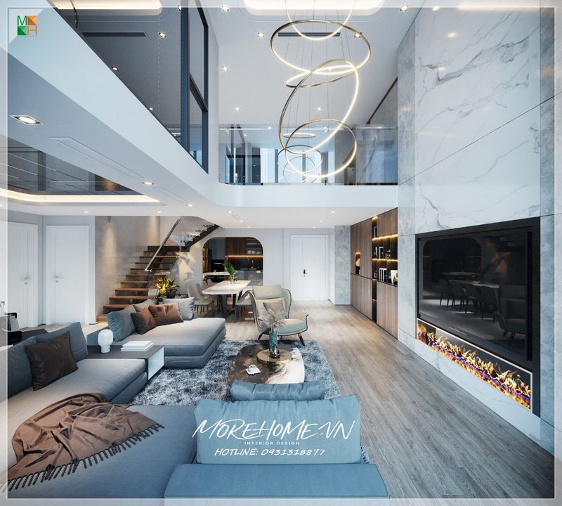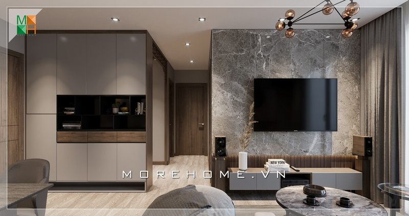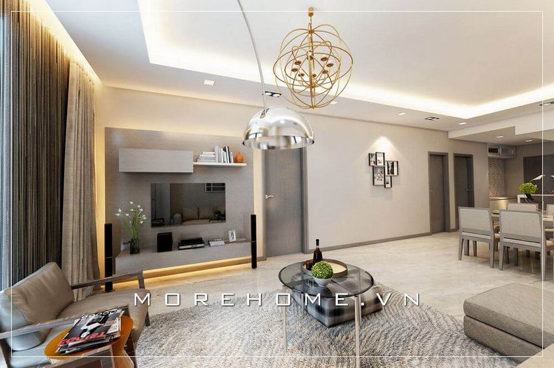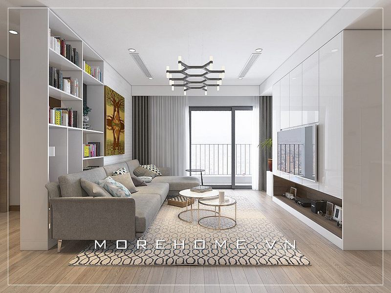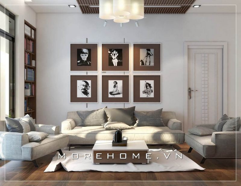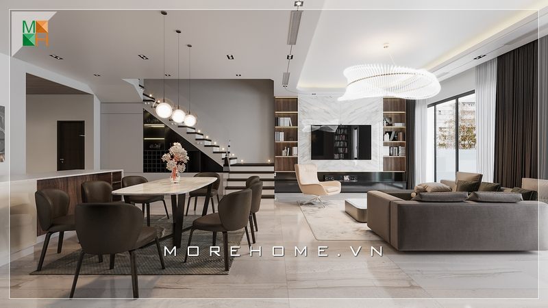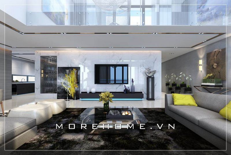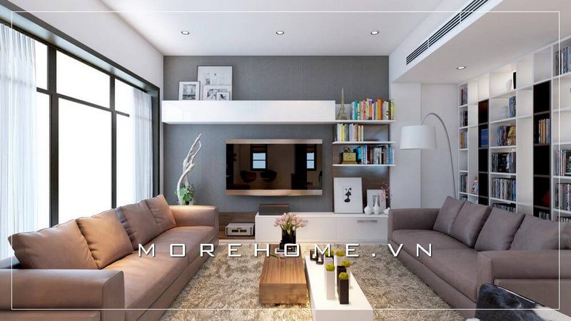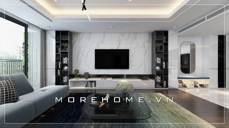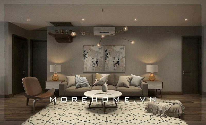 Mẫu thiết kế nội thất phòng khách đẹp với tông màu xám chủ đạo được yêu thích tại MoreHome