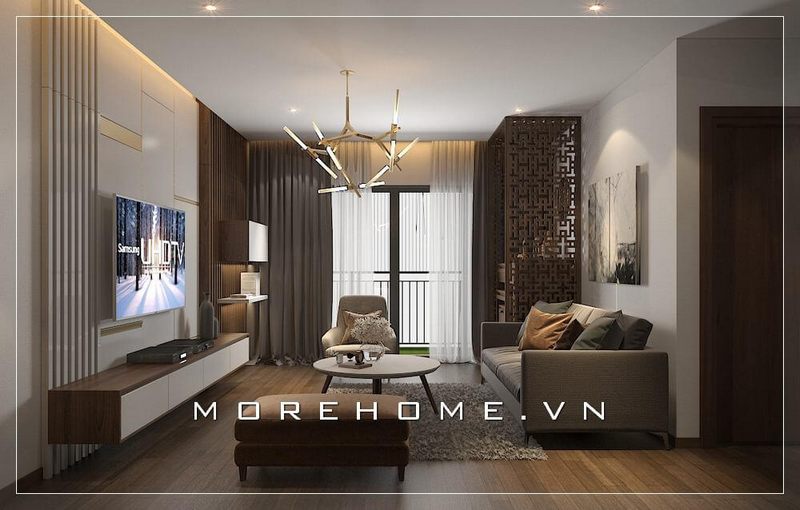 Thiết kế nội thất phòng khách chung cư hiện đại, cách bố trí ấn tượng bằng gỗ tự nhiên tạo nên sự tinh tế và lịch lãm cho không gian tiếp khách