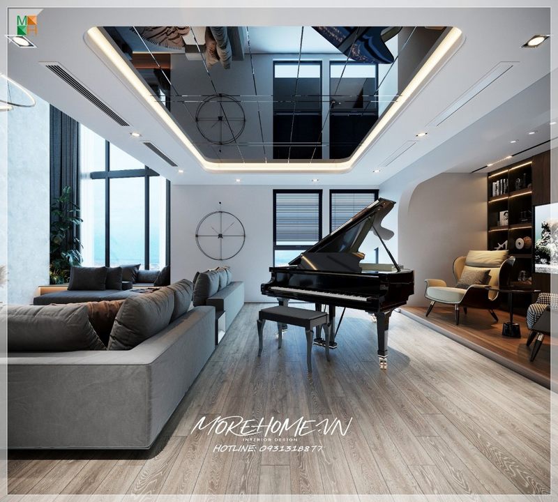 Phòng khách có đàn piano 1 không gian sang trọng và hiện đại của căn nhà. Một không gian hoàn hảo, tuyệt vời mà mọi gia đình đều mơ ước.