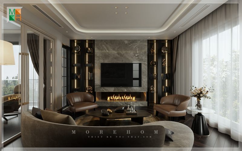 Thiết kế phòng khách chung cư cao cấp, sang trọng là một trong những mẫu thiết kế phòng khách chung cư được ưa chuộng hiện nay nhằm tạo nên không gian sống hiện đại và đẳng cấp hơn.