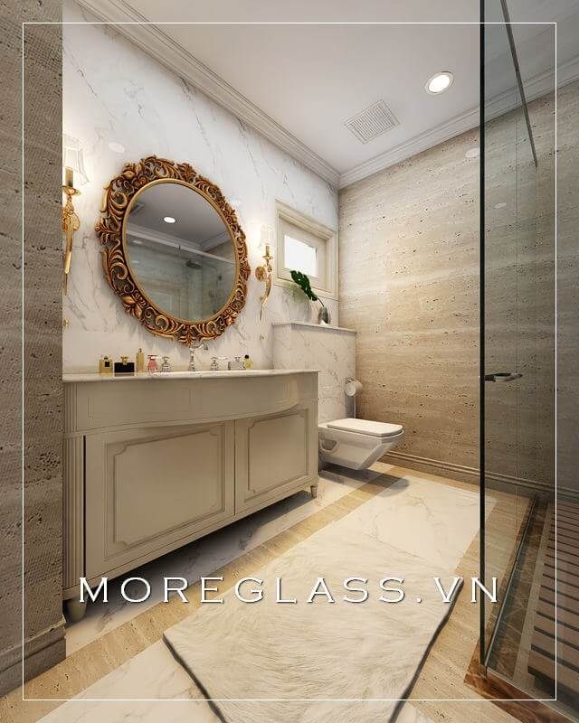 Gường trang trí phòng tắm có đường viền hoa văn độc đáo giúp tạo nên một không gian đẹp đẽ.