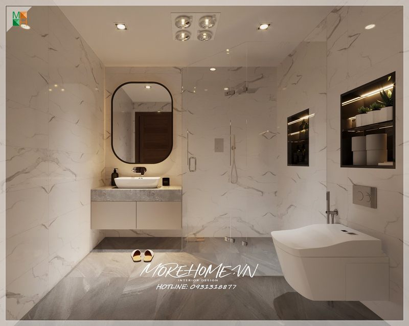 Đá ốp tường sáng màu giúp cho phòng tắm trở nên tươi mát, sạch sẽ và mới lạ.
