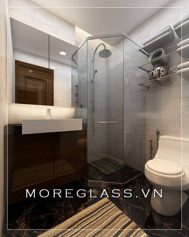 Mẫu thiết kế nhà vệ sinh hiện đại với phòng tắm kính đẹp, nhỏ nhắn đang là xu hướng được yêu thích hiện nay.